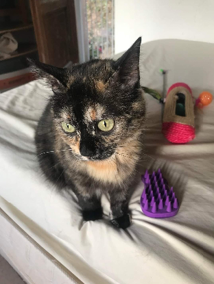 Elle adore les câlins et les gratouilles, et est très joueuse, elle excelle pour chasser le plumeau !