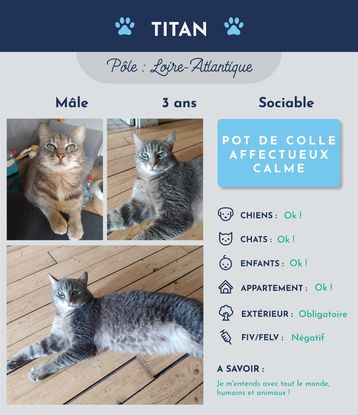 Bonjour, je m'appelle Titan, je suis un magnifique pot de colle de 3 ans ! J'aime tous les humains, même les petits humains et tous les animaux.
