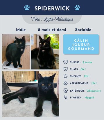 Je suis plutôt aventurier, j’adore explorer et grimper un peu partout. Je suis très curieux et j’aime me prélasser dehors au soleil. Je me distingue de mon frère car moi j’ai une petite tâche blanche dans le cou alors que lui n’en a pas ! J’ai un caractère très facile et je m’entends bien avec les autres animaux. J’adore les caresses et avec moi, les sessions câlins n’en finissent pas.