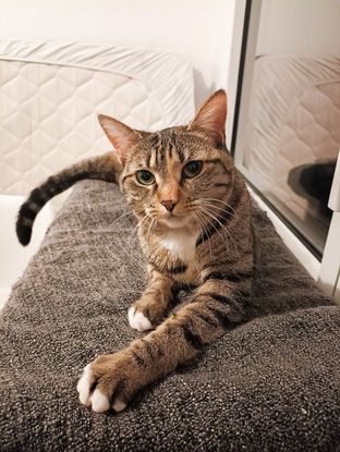 Belle est une chatte très douce et calme, elle se pose toute la journée à la fenêtre à rêver d’aventure, un extérieur est obligatoire pour sa future vie. Vous pourrez aussi la trouver dans votre bibliothèque ou votre panier à linge.