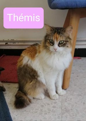 THEMIS adore les bisous, elle aime aller sur les genoux et réclame des caresses.