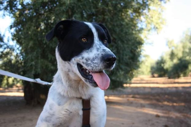ADOPTION refuge ALBAYYASA en Espagne ALAN né le 01/09/20, croisé de 22 kg, un grand métis aux détails blancs et noirs qui le rend unique, sa queue courte et un visage sérieux, mais serein, un beau métis aux yeux couleur miel et un regard éternel.