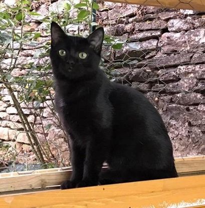 3 mois 1/2 - chaton noir avec quelques poils blancs comme des gouttes de lait dans le café ;-) Gentil, câlin, ronron facile. Un don est demandé pour chaque adoption
