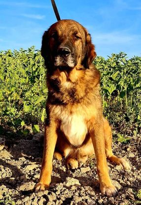 ASLAN, croisé mastin espagnol (avec des airs de berger allemand), né le 15 / 09 / 2017 – actuellement en refuge en Espagne – trouvé à l’attache depuis plusieurs mois, voire années dans des conditions déplorables