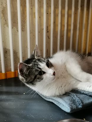 Actuellement en famille d'accueil, Tosca est un chat calme, sociable et joueur.