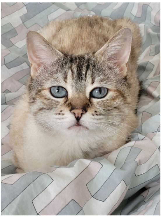 Cinnamon est une vieille minette qui ne fait pas du tout son âge. Très bavarde, elle a toujours quelque chose à raconter et elle adore qu'on lui réponde et qu'on s'intéresse à elle. Son regard triste la rend drôle et attachante. Un peu collante, elle aime quand même qu'on l'a laisse un peu tranquille tout en sachant qu'il y a de la compagnie à proximité. Elle se sentirait parfaitement bien avec quelqu'un souvent à la maison pour lui faire la discussion. Cinnamon n'est pas vaccinée suite à son grand âge, elle aura besoin de vivre dans un environnement sans extérieur pour sa sécurité.