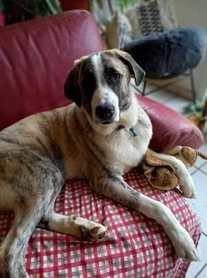 Il adore les balades quotidiennes sans être un grand sportif (comme tous les mâtins en général), mais a testé le canicross et a pas mal tracté après une rando de 2h30. Il a un très bon rappel, s'attache vite à son humain est ok congénères, chats, très sociable, et propre à la maison.