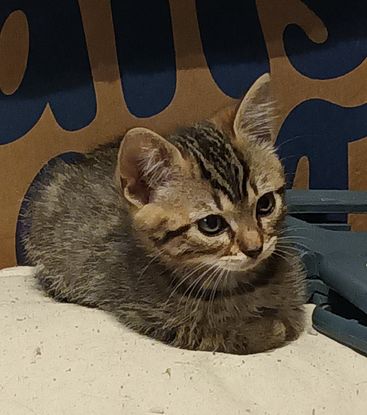 Chaton mâle, type Européen, coloris tigré gris/noir/roux. Né le 08 mai 2022.