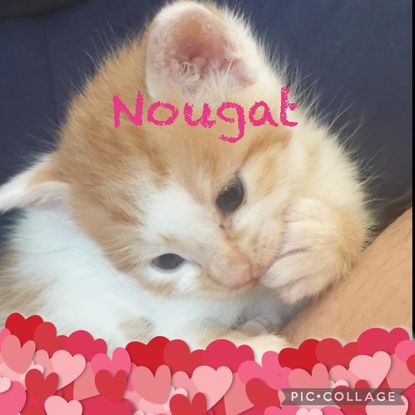 Nougat, petit chaton très câlin, adoptable à la mi-juillet avec remboursement des frais vétérinaires engagés