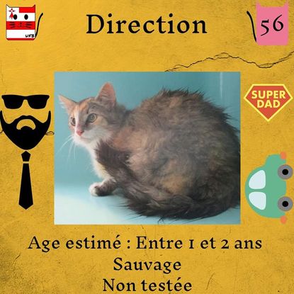 Direction est une femelle de 1-2 ans sauvageonne (un comportement normal en fourrière) qui vous attend dans une fourrière du 56. ATTENTION SORTIE AU PLUS TARD LE 24/06/2022 (avant euthanasie) !