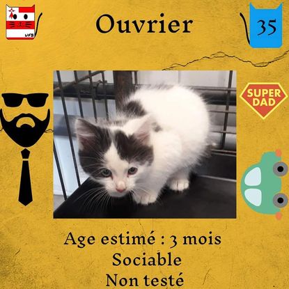 Ouvrier est un mâle de 3 mois sociable qui vous attend dans une fourrière du 35. ATTENTION SORTIE AU PLUS TARD LE 24/06/2022 (avant euthanasie) !
