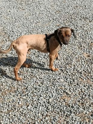 Sa famille d’accueil fait du renforcement positif et commence à lui apprendre les ordres de base, Nounours évolue bien mais il a encore besoin de temps pour oublier son passé.
