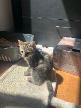 Très gentil chaton mâle tigré clair et blanc née aux alentours du 08 avril 2022 cherche des adoptants. Il est très joueur et calin et s'entend avec les gens, les chats et les chiens. Visible dans sa famille d'accueil dans le78. Il est identifié par puce électronique, vacciné, déparasité et stérilisé.