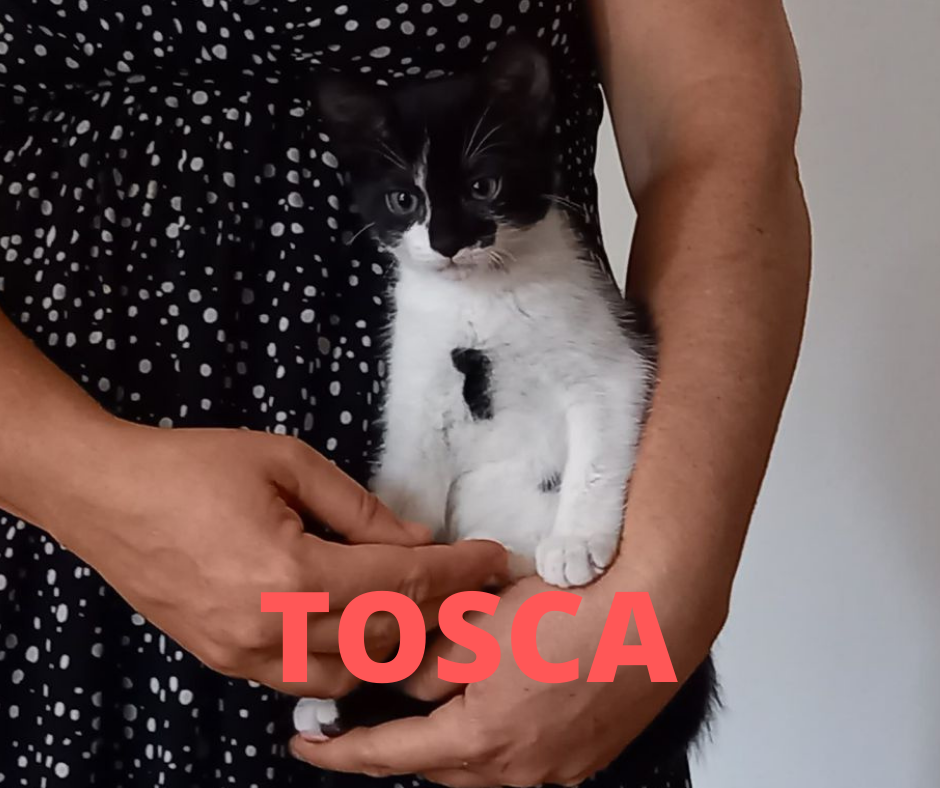 TOSCA est une petite chatonne éveillée et joueuse, la première à tout découvrir, intéressée par l humain et caline