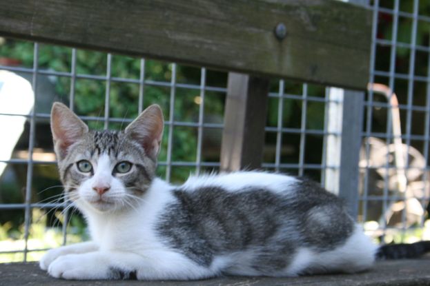 TYSON est un chaton mâle né en avril 2022 blanc et tigré