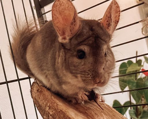Litchi est un petit chinchilla tout léger. Il aime bien trier la nourriture et attend sa gourmandise chaque matin et chaque soir. Il est propre.