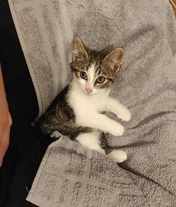 Chaton mâle, type Européen, coloris tigré et blanc. Né le 15 avril 2022