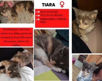 Tiara est dynamique, joueuse et adore les câlins après les moments fous. Elle aime mes souris, adore les balles