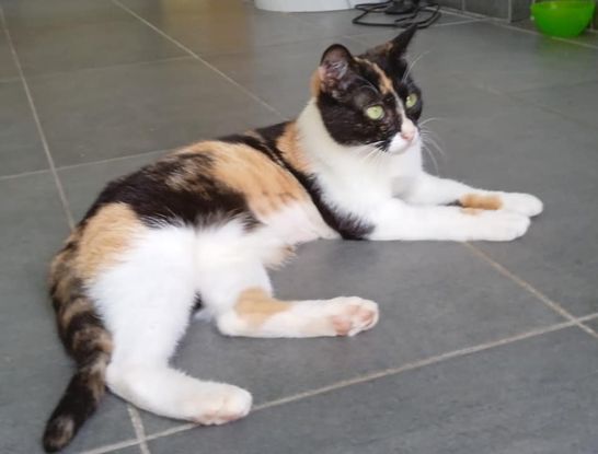 Louisa est une petite chatte tricolore de 10 mois.