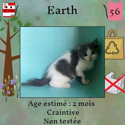 Earth est une femelle de 2 mois craintive (un comportement normal en fourrière) qui vous attend dans une fourrière du 56. ATTENTION SORTIE AU PLUS TARD LE 08/07/2022 (avant euthanasie) !