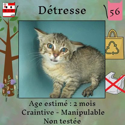 Détresse est une femelle de 2 mois craintive (un comportement normal en fourrière) qui vous attend dans une fourrière du 56. ATTENTION SORTIE AU PLUS TARD LE 08/07/2022 (avant euthanasie) !