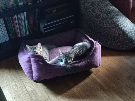 Xander, mâle de 3 mois. joueur, câlin, avec des gros ronrons, un peu timide au premier abord mais dès qu’il est à l’aise, il est tout joyeux. Il s’entend bien avec le chien de la maison.