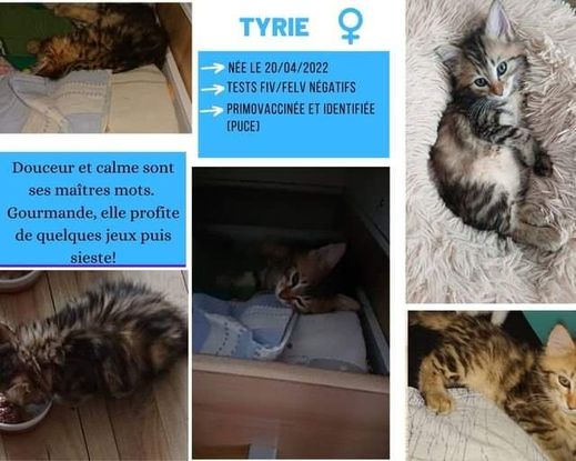 Tyrie est identifiée (puce), testée fiv/felv négatifs et primovaccinée
