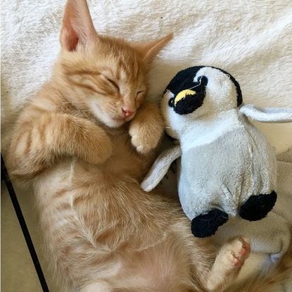 Arrivé à l’âge de 15 jours avec sa maman et ses frères et soeurs, il profite désormais des joies de la vie en compagnie des humains. Cosmos est très joueur et câlin ? On craque sur sa jolie bouille et son beau pelage roux !! Il adore sa peluche pingouin avec qui il joue et dort ! ?