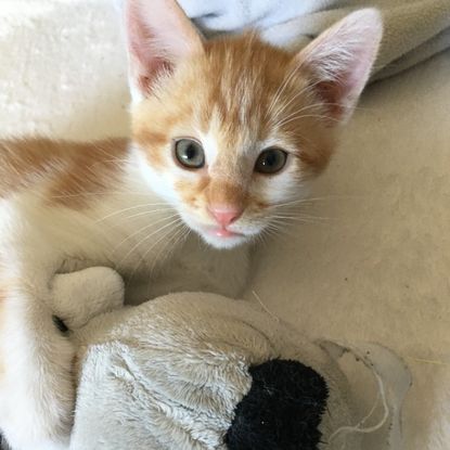 Et on continue avec les fleurs ! Nous vous présentons Pavot, un joli petit chaton roux et blanc né le 20/04/2022.