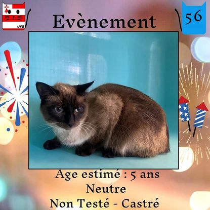 Evenement est un mâle de 5 ans qui vous attend dans une fourrière du 56. ATTENTION SORTIE AU PLUS TARD LE 15/07/2022 (avant euthanasie) !