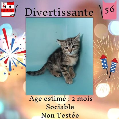 Divertissante est une femelle de 2 mois sociable qui vous attend dans une fourrière du 56. ATTENTION SORTIE AU PLUS TARD LE 15/07/2022 (avant euthanasie) !