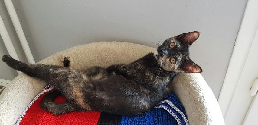 Trouvé dans la cour d'une école, à l'âge de 4 semaines, Cracotte a été élevée au biberon par une bénévole de notre Collectif. Elle est joueuse, très câline, et a besoin d'espace.
