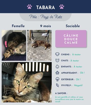 Chalut, je m'appelle Tabara, je suis une jolie chatte de 9 mois.