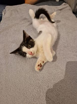 Chaton mâle, type Européen, coloris blanc et noir. Né le 2 juin 2022