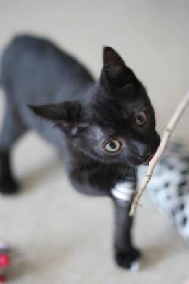 Sous ses airs timides se cache un chaton calme pour son âge, observateur, curieux et joueur. Il réfléchit avant d’agir, on voit presque les rouages de son cerveau en action :)