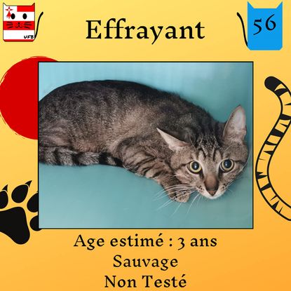 Effrayant est un mâle de 3 ans sauvageon (un comportement normal en fourrière) qui vous attend dans une fourrière du 56. ATTENTION SORTIE AU PLUS TARD LE 29/07/2022 (avant euthanasie) !