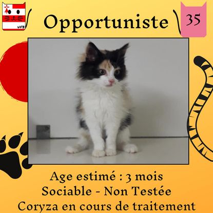 Opportuniste est une femelle de 3 mois sociable qui vous attend dans une fourrière du 35. ATTENTION SORTIE AU PLUS TARD LE 29/07/2022 (avant euthanasie) !