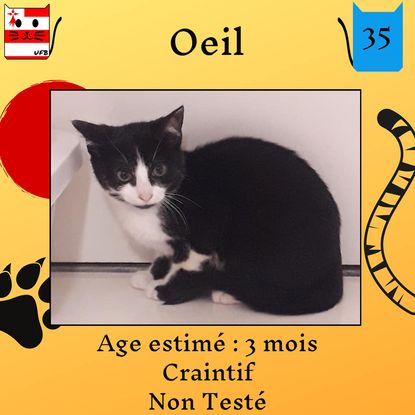 Oeil est un mâle de 3 mois craintif (un comportement normal en fourrière) qui vous attend dans une fourrière du 35. ATTENTION SORTIE AU PLUS TARD LE 29/07/2022 (avant euthanasie) !