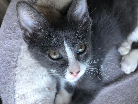 Carbone est un adorable chaton de bientôt 3 mois très sociable humain et chat. C'est un chaton plein de charme qui est en demande constante de câlins et de bras dans lequel se lover. Si vous êtes à la recherche d'une boite à ronron pleine de douceur, il vous attend dans sa famille :)