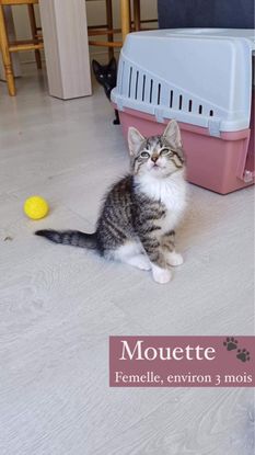 Mouette est en famille d’accueil avec sa maman et ses 6 frères et sœurs.