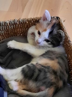 Je suis une chatonne née aux alentours du 22 mai 2022. J'ai été sortie de la rue avec mes frères et soeurs. J'ai de l'énergie à dépenser (normal je suis encore un bébé !) mais je suis aussi proche de l'humain.