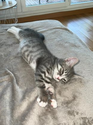 Grisou est un adorable chaton très sociable, il se laisse prendre dans les bras et ronronne à la moindre caresse ?