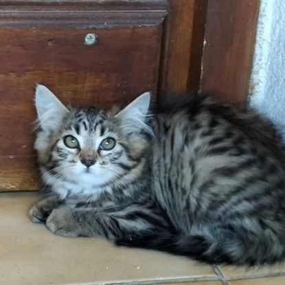 Très belle chatonne de 3 mois à peine, poils mi-long encore craintive mais elle prend de l'assurance jour après jour chez sa maman d'accueil