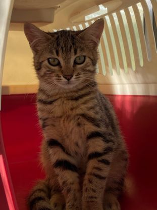 Très jolie chatonne de 3 mois , encore réservée mais elle prend de l'assurance jour après jour chez sa maman d'accueil