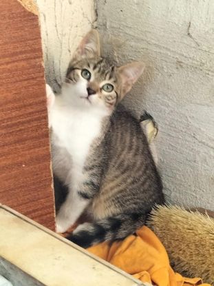Beau chaton de 3 mois à peine, seul petit gars de la fraterie mais le plus curieux, espiègle et sociable. Il excelle par ses acrobaties et ces dons de grimpeur :-)