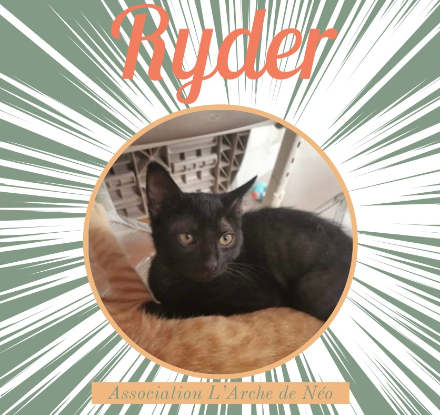 Ryder est identifié par puce électronique, déparasité puces et tiques, stérilisé et vacciné (2 doses) contre le typhus, le coryza et la leucose.