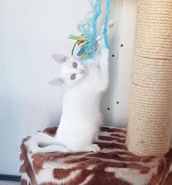 TOSCANE est une chatonne blanche avec une tâche grise née le 20 mai 2022