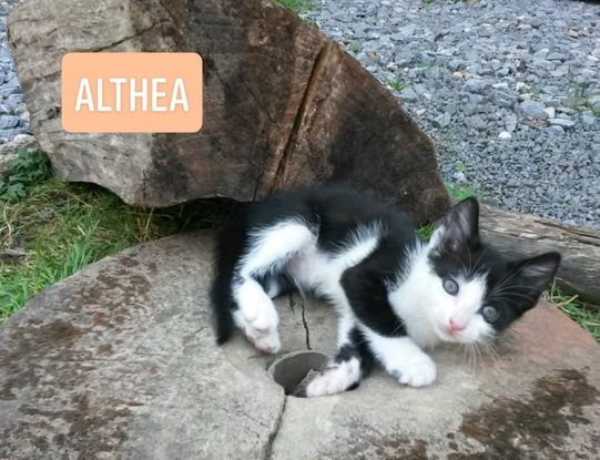 Elle est un peu plus timide que son frère mais vient volontiers vers l'humain à la recherche de câlins mais aussi pour jouer.
