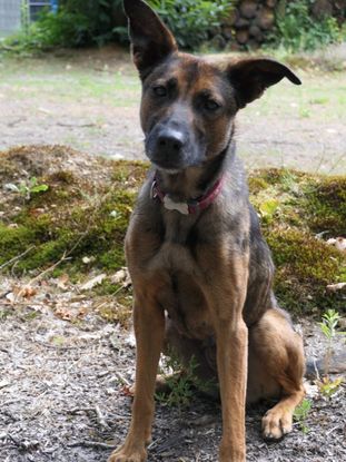 Tika a été trouvée squelettique sur l'ile de La Réunion. Elle pèse 14 kilos actuellement mais devra atteindre les 19 kilos environ à son poids de forme (taille moyenne). Elle a environ 4 ans.