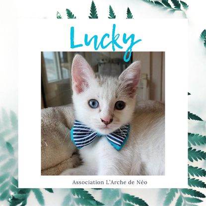 Lucky sera placé identifié par puce électronique, déparasité (puces et vers), avec la première injection (typhus, coryza ET leucose). Sa stérilisation est OBLIGATOIRE et à votre charge toutefois l'association rembourse 50% des frais engagés sur facture. La stérilisation doit être faite AU PLUS TARD à 6 mois.